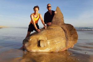 一条罕见巨型鱼冲上沙滩,看着像沉船残骸,“翻车”起来能撞坏船