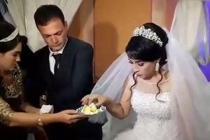 新娘婚礼上用蛋糕和新郎开玩笑被狠扇耳光
